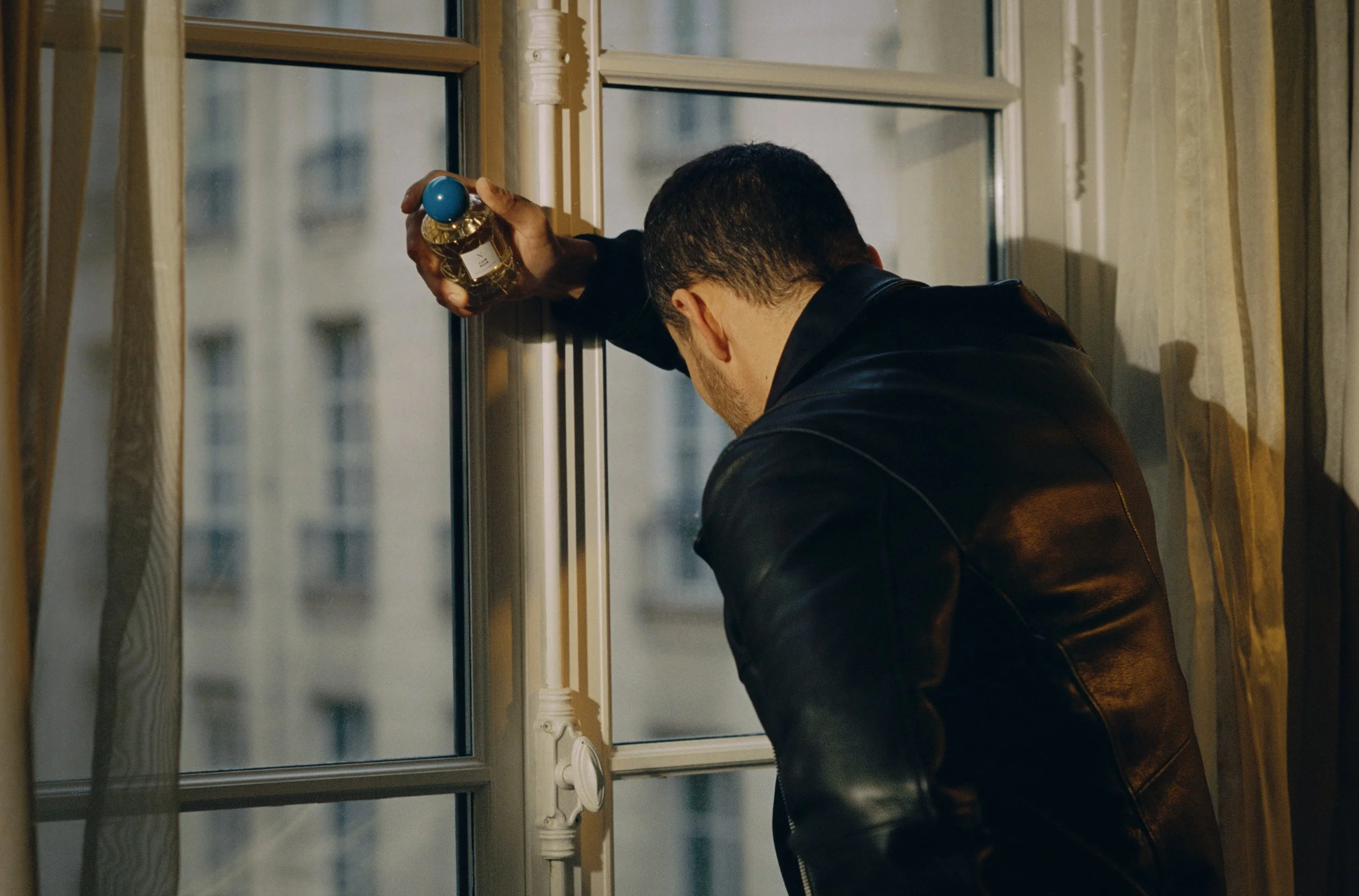 Rather than presenting the perfume as a product, the series constructs a visual narrative where scent becomes a silent presence within the interaction of two characters.